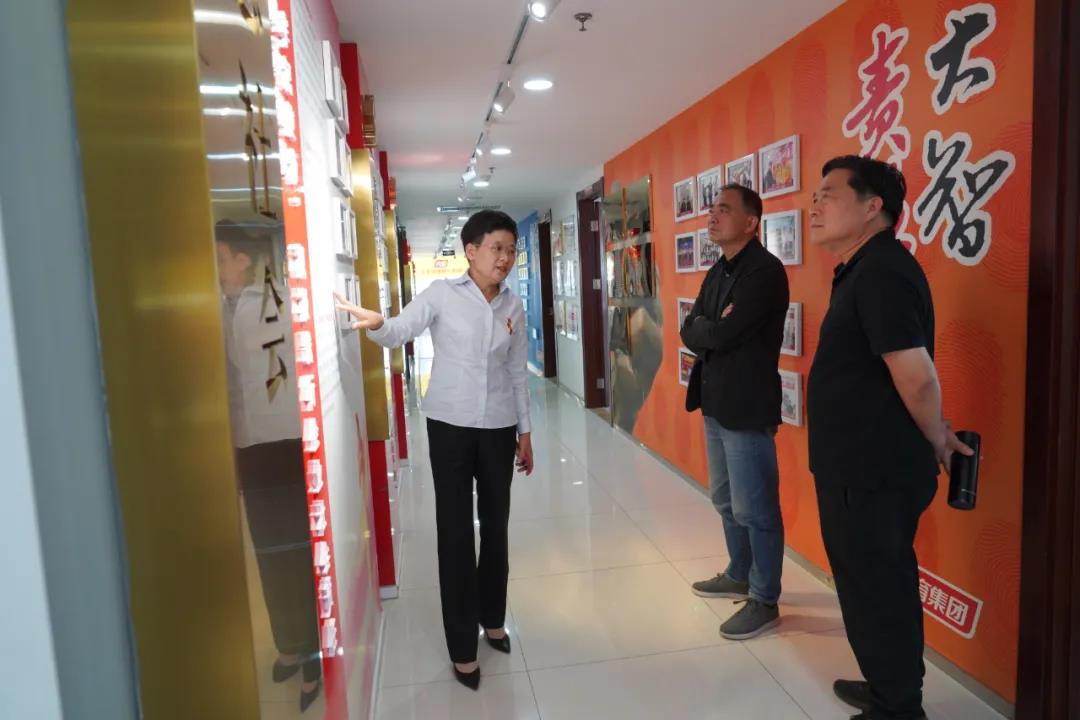 首先,王現(xiàn)芹詳帶領(lǐng)大家參觀了黨建長廊,詳細(xì)介紹了大智組織架構(gòu)、企業(yè)文化等相關(guān)情況,以及“智惠黨建一三九”黨建工作模式,黨建引領(lǐng)下的“一帶一促”群團(tuán)建設(shè)理念和“智惠+”群團(tuán)建設(shè)模式。
