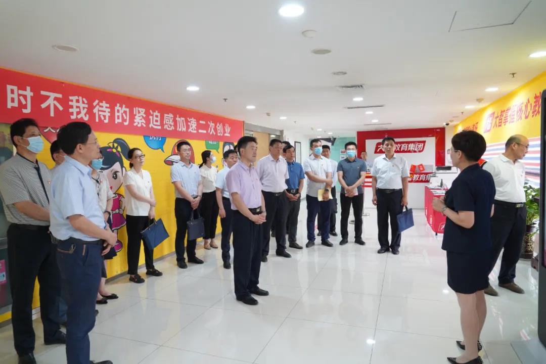 6月23日,山東省市場監(jiān)督管理局、濟南市民營企業(yè)高質量發(fā)展服務隊在大智聯合開展“學黨史 辦實事 走民企 解難題”主題黨日。省市場監(jiān)督管理局黨組成員、副局長郭之祥,省市場監(jiān)督管理局一級調研員、個體私營經濟發(fā)展促進處處長孫樂平,濟南市民營企業(yè)高質量發(fā)展服務隊總領隊閆卓然等相關領導出席活動。大智教育集團黨委書記王現芹,董事長張維東熱情接待。