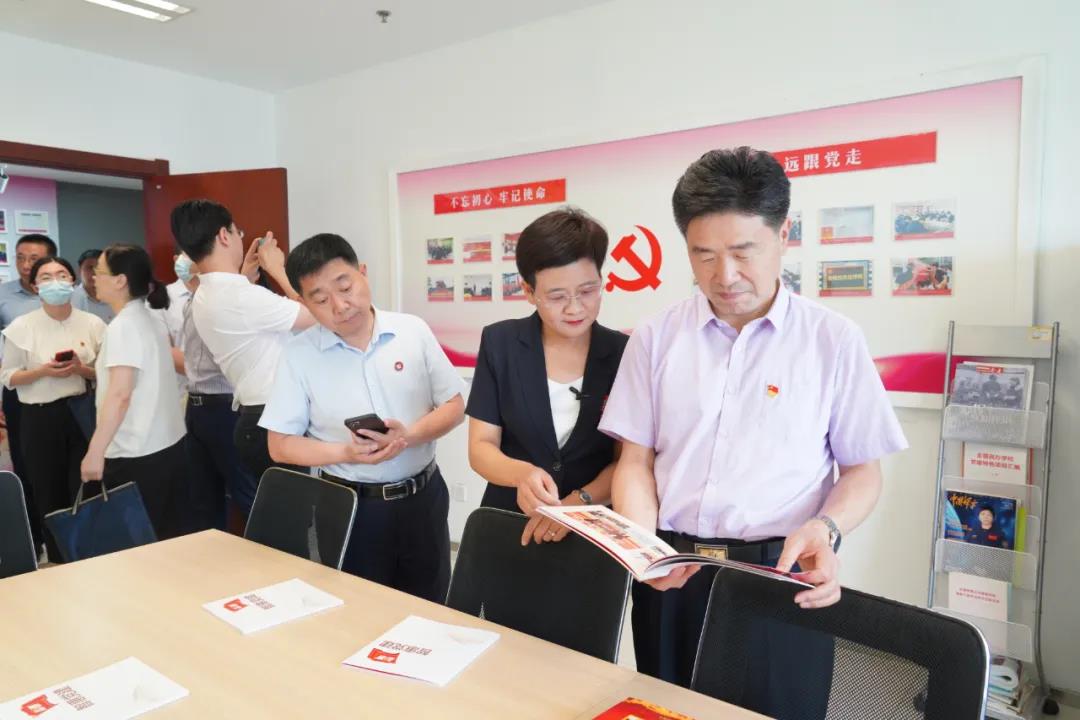 首先,王現芹帶領大家參觀了黨建長廊,詳細介紹了大智組織架構、企業(yè)文化等相關情況,以及“智惠黨建一三九”黨建工作模式,黨建引領下的“一帶一促”群團建設理念和“智惠+”群團建設模式。隨后,大家參觀了黨員活動室,翻閱大智黨建相關資料。大家對大智的黨建工作給予了充分肯定和高度認可。
