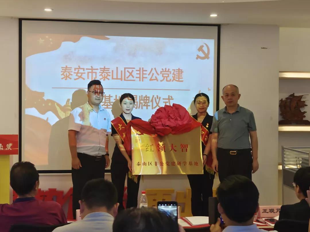 活動中,孫民與泰安大智負責人徐國和為“泰安市泰山區(qū)非公黨建研學基地”揭牌。