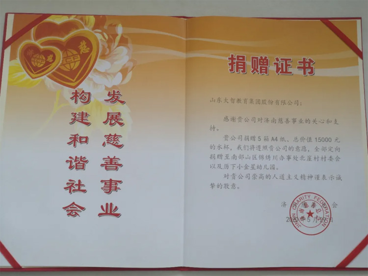 捐贈(zèng)儀式上,大智濟(jì)南區(qū)域?yàn)槟喜可絽^(qū)少年兒童捐贈(zèng)5箱A4紙、總價(jià)值15000元水杯,這不僅僅是一個(gè)溫暖的數(shù)字,更是一份強(qiáng)大的力量。
