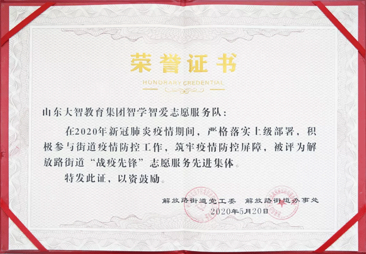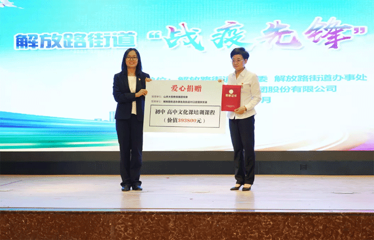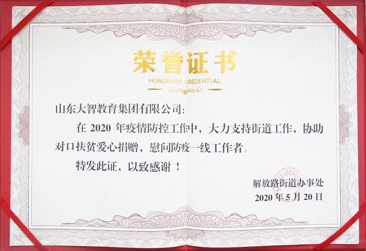 戰(zhàn)疫不忘扶貧,活動現(xiàn)場,大智向解放路街道辦事處及街道對口支援扶貧縣城捐贈價值393800元公益課程,街道辦事處現(xiàn)場為大智頒發(fā)榮譽證書,對大智表示感謝。