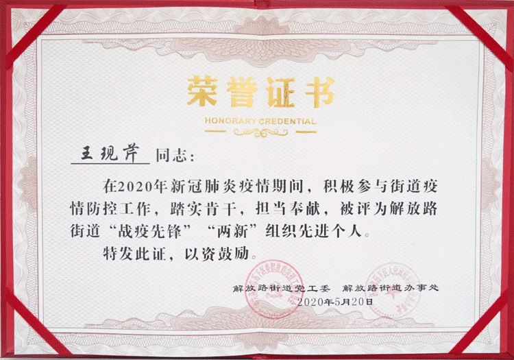 05月20日,由濟南市歷下區(qū)解放路街道黨工委和街道辦事處主辦,大智控股集團承辦的解放路街道“戰(zhàn)疫先鋒”表彰活動在歷下區(qū)文化和旅游局舉辦,現(xiàn)場對解放路街道新冠肺炎疫情期間涌現(xiàn)出來的先進黨組織、先進集體和先進個人進行表彰。濟南市歷下區(qū)委常委、宣傳部部長王海清,副區(qū)長趙琳,區(qū)委組織部副部長、區(qū)公務(wù)員局局長王軍凱,解放路街道黨工委書記仵愛之等參會。會上,大智榮獲“‘戰(zhàn)役先鋒’‘兩新’組織”先進單位、“‘戰(zhàn)役先鋒’‘兩新’組織”先進個人、“‘戰(zhàn)役先鋒’志愿服務(wù)先進集體”等系列榮譽。