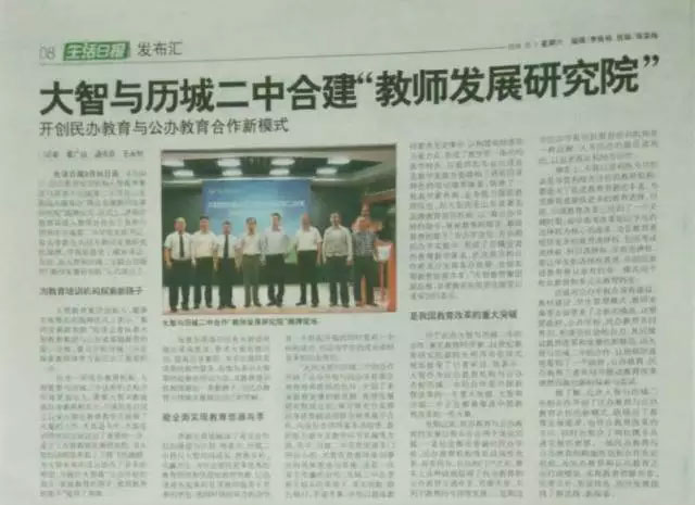 09月30日,大智與濟南市歷城第二中學在山東新聞大廈舉辦“聯合共建教師發(fā)展研究院”揭牌儀式,開啟了民辦教育與公辦學校攜手共建的新模式。消息一...