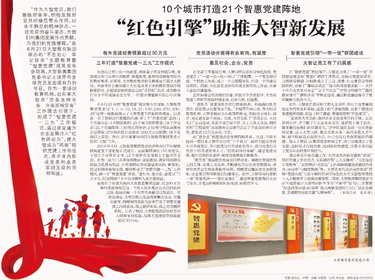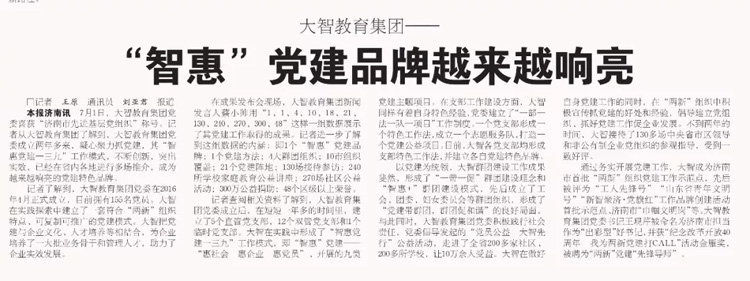 《濟(jì)南日報(bào)》在建黨節(jié)當(dāng)日對大智黨建進(jìn)行了全面深度報(bào)道。