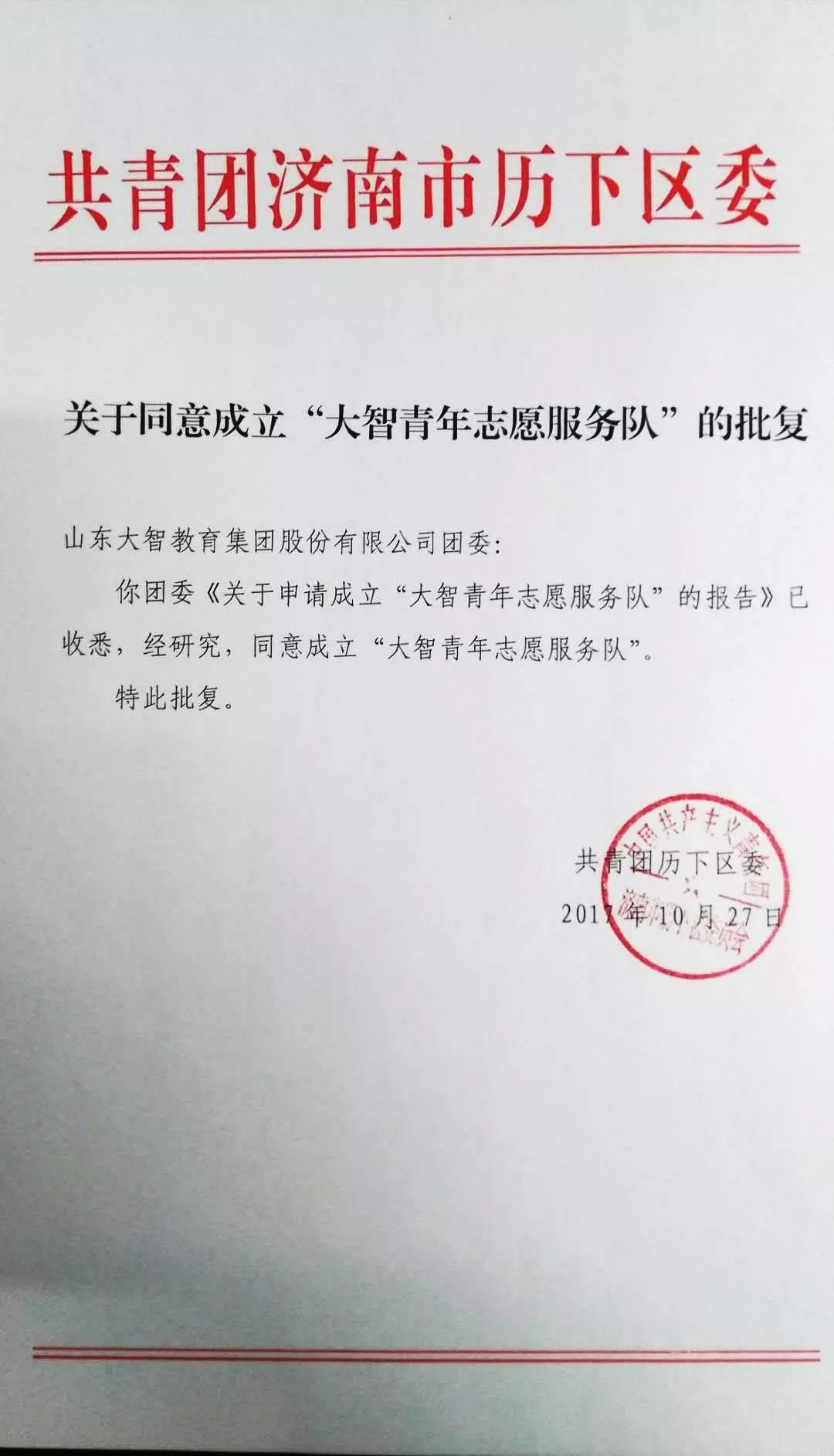 為了建立長期有效的機制,更好地開展公益事業(yè),肩負起社會責任, 10月27日,大智青年志愿服務隊獲批復正式成立!共青團歷下區(qū)委同意成立大智青年...