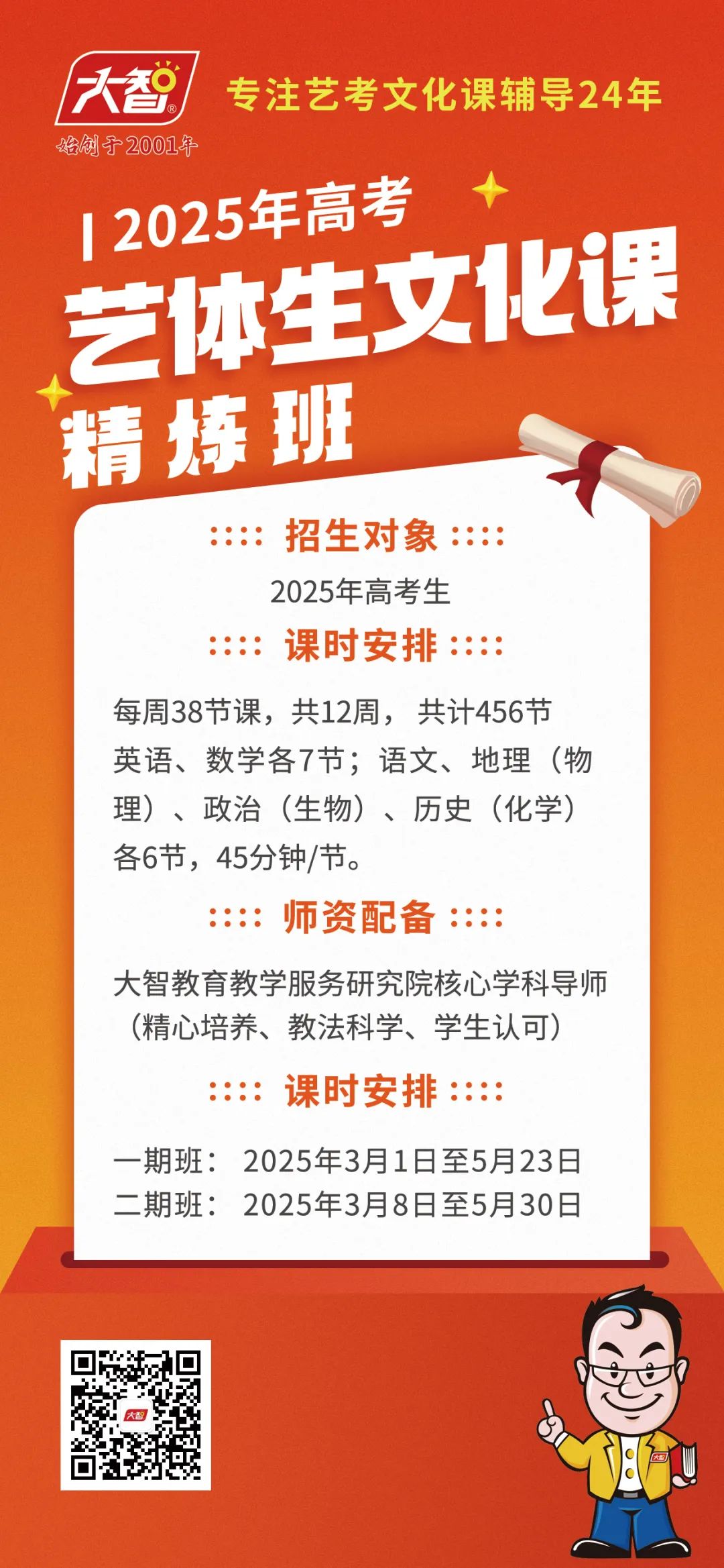 ??立即報(bào)名,名額有限,快來(lái)加入大智2025藝體生文化課的大家庭,讓我們共同見(jiàn)證你的蛻變與飛躍!??