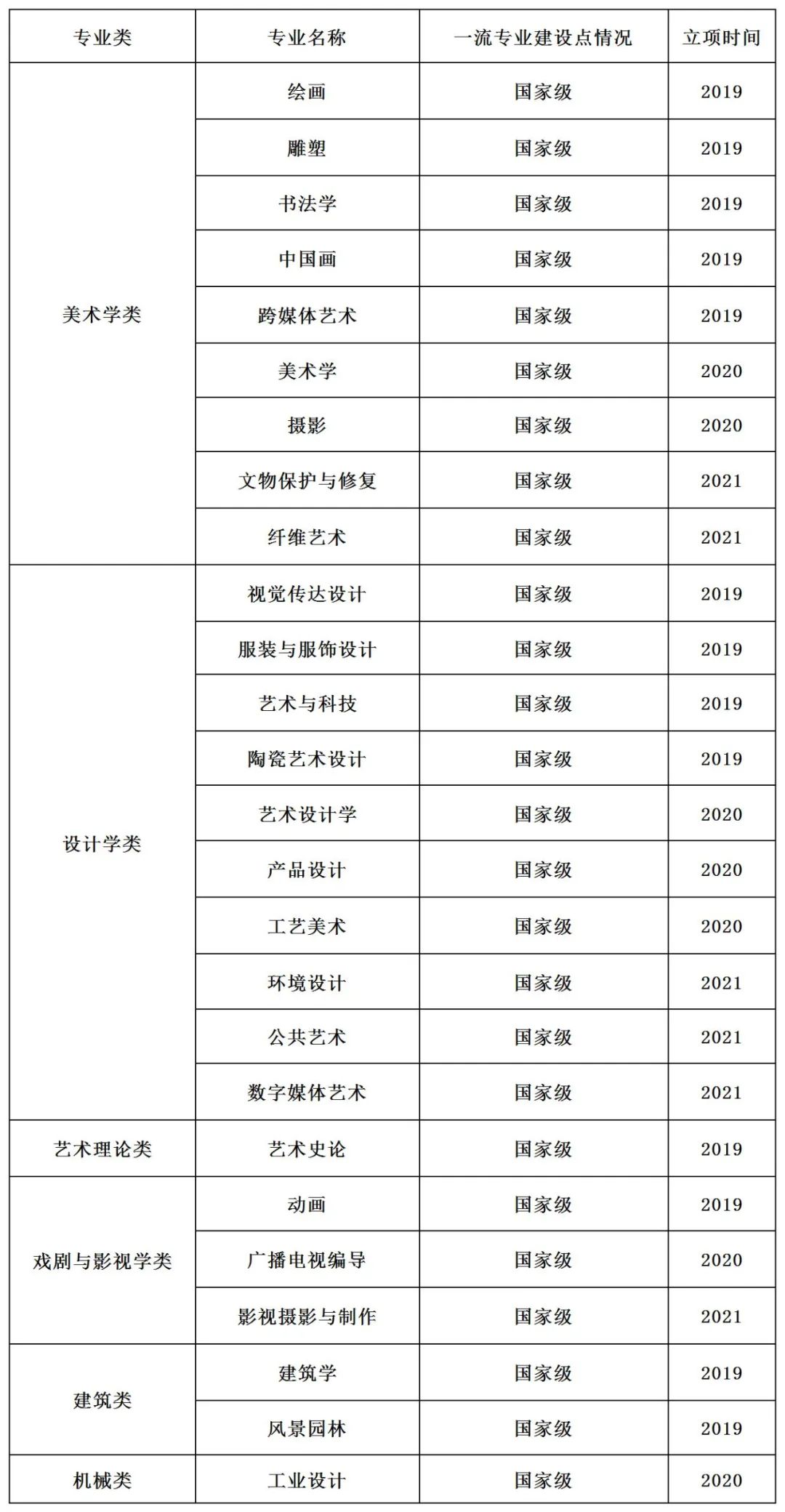 一、藝術(shù)院校一流本科專業(yè)