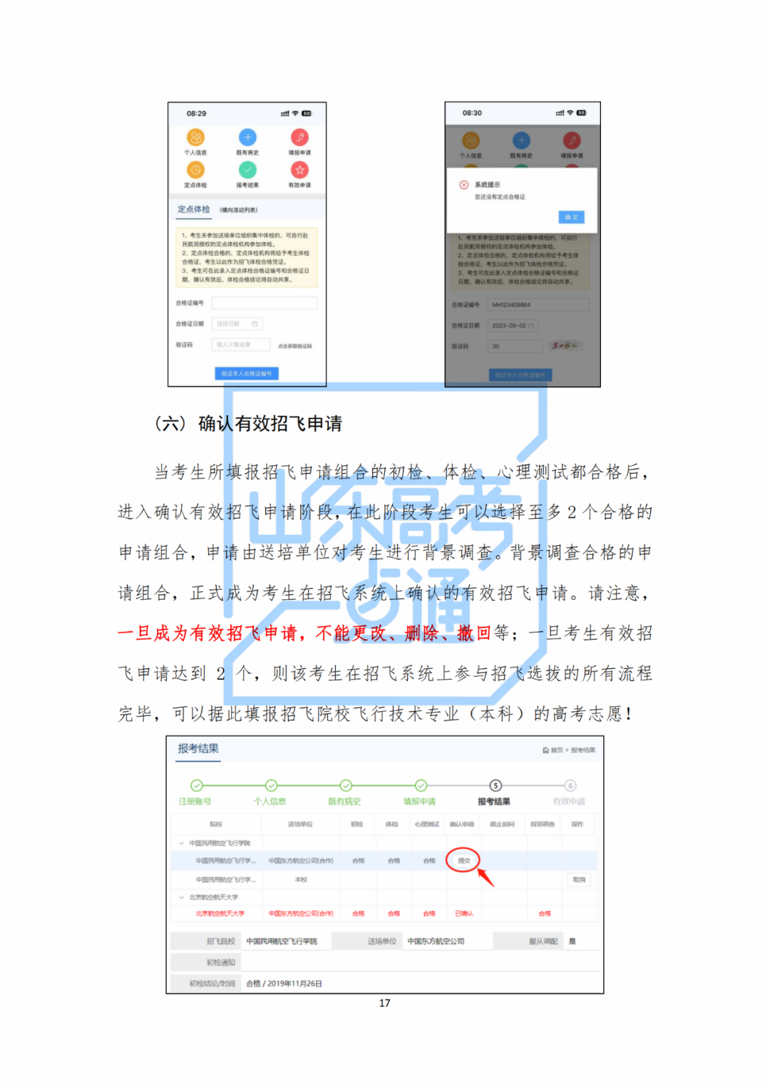 16、如何確認(rèn)有效招飛申請?