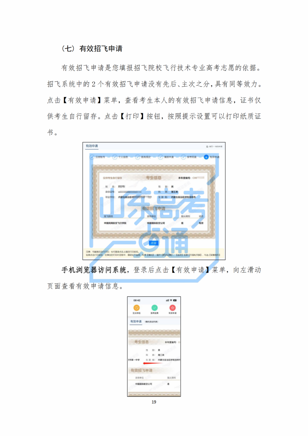 19、如何根據(jù)有效招飛申請?zhí)顖蟾呖贾驹福?/span>
