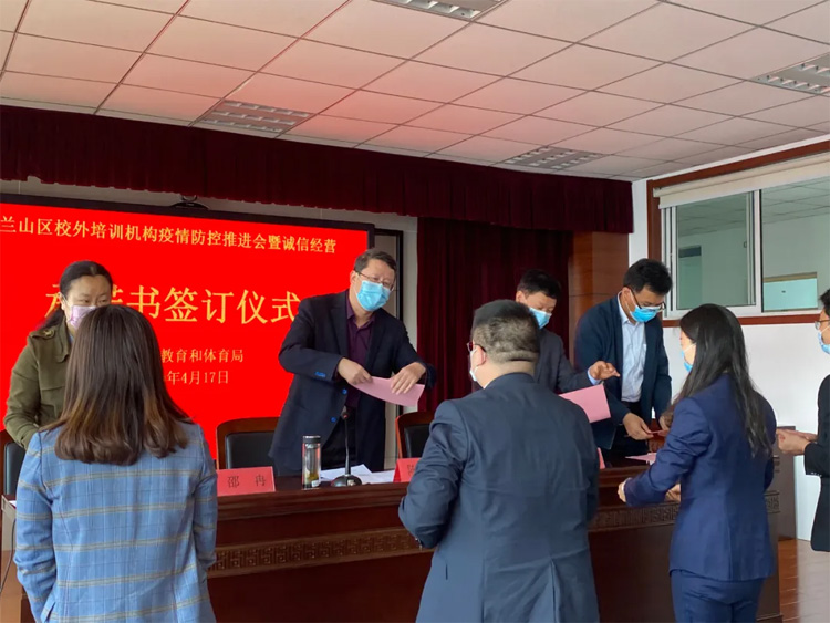 近日,大智臨沂區(qū)域參加了臨沂市蘭山區(qū)校外培訓(xùn)機(jī)構(gòu)疫情防控推進(jìn)會暨誠信經(jīng)營承諾書簽訂儀式。會上,大智臨沂區(qū)域作為校外機(jī)構(gòu)代表上臺遞交承諾書。