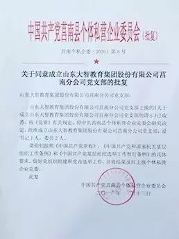 08月02日,中國共產(chǎn)黨德州市德城區(qū)委組織部正式批復(fù)同意成立中共山東大智控股集團(tuán)股份有限公司德州分公司支部委員會。 這是大智控股集團(tuán)黨建...