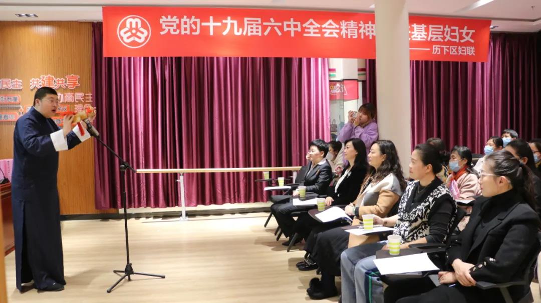 為深入學(xué)習(xí)十九屆六中全會精神,不斷推進(jìn)基層婦聯(lián)學(xué)習(xí)教育走深走實,堅定理想信念,增強(qiáng)使命擔(dān)當(dāng),提升基層婦女理論水平,引領(lǐng)廣大婦女聽黨話,跟黨走,全面提高素質(zhì),促進(jìn)婦女人才成長,11月19日,“建功歷下 鹿鳴巾幗”理論宣講團(tuán)走進(jìn)濟(jì)南市歷下區(qū)解放路街道后坡街社區(qū)開展“黨的十九屆六中全會精神走進(jìn)基層巾幗大講堂”主題宣講活動,此次活動由濟(jì)南大智教育承辦。