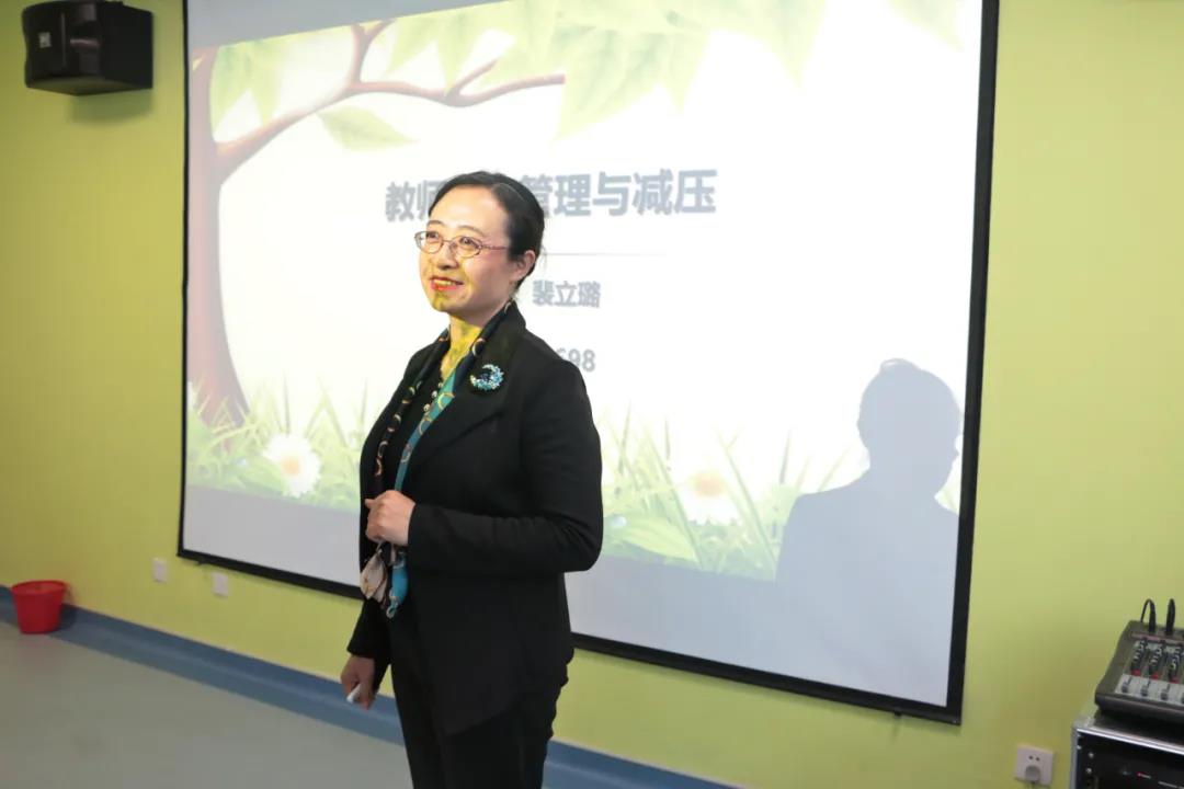 國(guó)際注冊(cè)高級(jí)心理咨詢師、高級(jí)家庭教育講師裴立璐以《教師情緒管理與減壓》為主題,在心理方面為大家解決工作上遇到的問(wèn)題,教給大家如何滿足學(xué)生的需求以及家長(zhǎng)的期待,現(xiàn)場(chǎng)為大家進(jìn)行了性格測(cè)試并解讀,幫助大家更好地了解自己的行為習(xí)慣。
