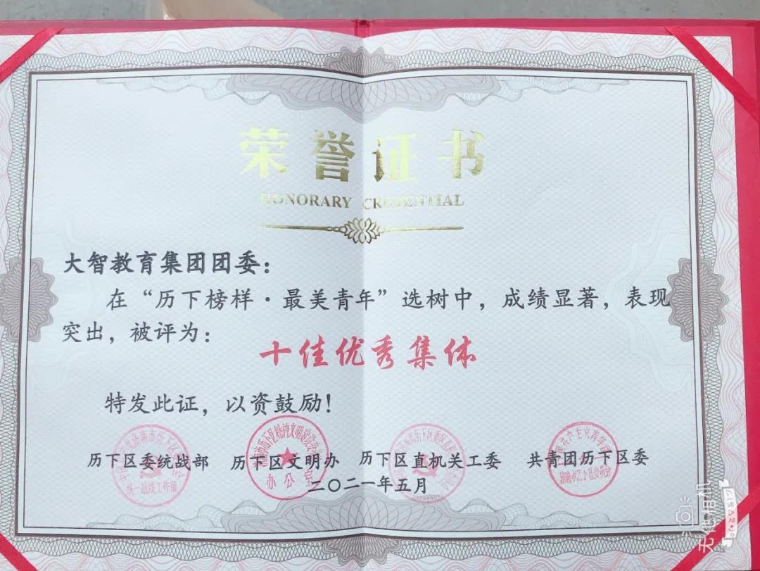 大智教育集團(tuán)團(tuán)委在本次活動(dòng)中榮獲“十佳優(yōu)秀集體”。