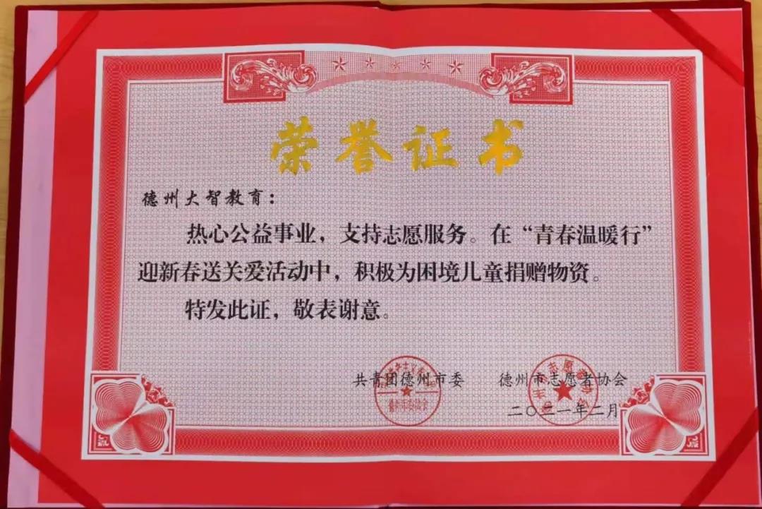 大智教育集團(tuán)各區(qū)域積極開展智學(xué)智愛——"牽手關(guān)愛"千人志愿服務(wù)大行動(dòng),投身志愿服務(wù)事業(yè)。最近,大智臨沂區(qū)域以及德州區(qū)域在志愿服務(wù)工作上的付出也得到了上級(jí)團(tuán)組織的高度認(rèn)可。