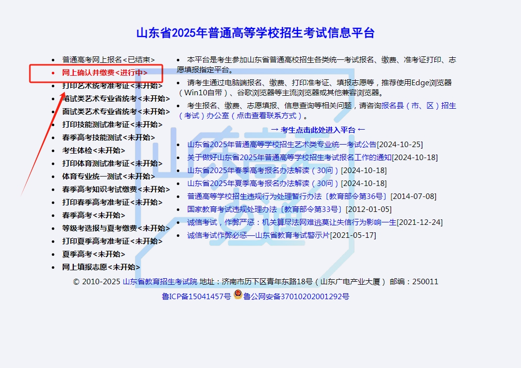 2025高考報名繳費工作11月12日至16日(每天9:00-18:00)進行。提醒還未繳納高考報名費的考生,及時登錄山東省教育招生考試院官網(wǎng)(http://wsbm.sdzk.cn)完成繳費工作。