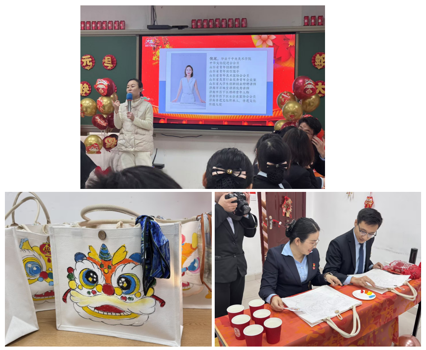 本次活動也特意邀請到濟南畫歌畫室的團隊老師,為團隊家人指導DIY手工手繪包包,醒獅形象勇猛充滿活力,象征面對困難不屈不撓、奮斗向前的精神,鼓勵家人以積極態(tài)度迎接挑戰(zhàn)、不斷進取。