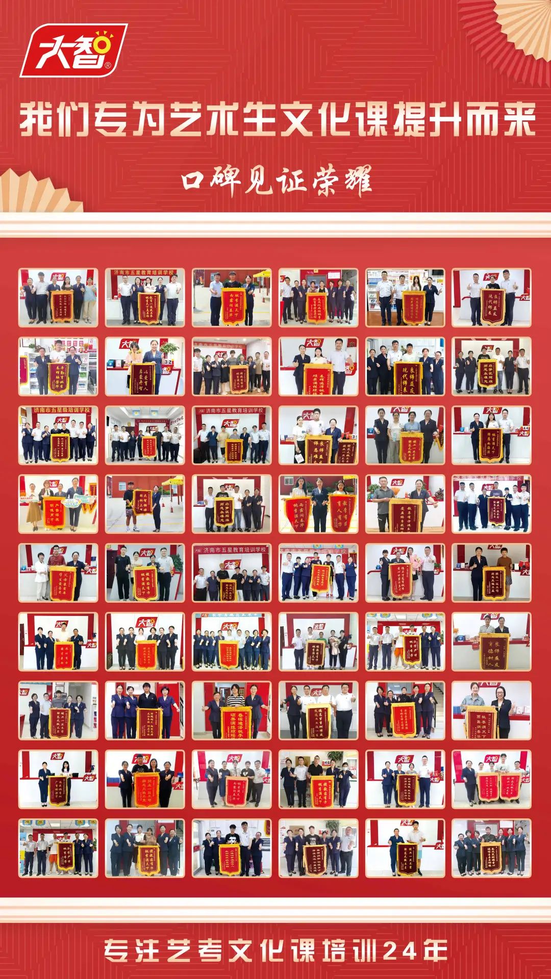 一面面錦旗見(jiàn)證大智教學(xué)實(shí)力。大智的教研成果得到了《大眾日?qǐng)?bào)》《齊魯晚報(bào)》《半島都市報(bào)》、山東電視臺(tái)、齊魯電視臺(tái)等主流媒體廣泛關(guān)注,曾先后榮獲“中國(guó)社會(huì)組織評(píng)估4A級(jí)單位”“山東省消費(fèi)者滿意單位”及“山東省著名商標(biāo)” 等榮譽(yù),受到學(xué)生和家長(zhǎng)的好評(píng)。