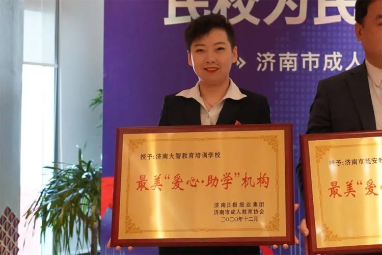 10. 2020年,大智獲評山東省放心消費示范單位,榮獲2019年度“社會教育培訓機構(gòu)·規(guī)范教育辦學品牌”和最美“愛心助學”機構(gòu)。