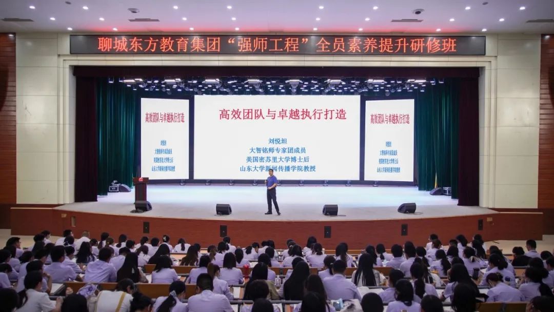 7月11日,聊城市東方教育集團(tuán)“強(qiáng)師工程”之全員素養(yǎng)提升研修班開班典禮在聊城東方教育集團(tuán)報(bào)告廳舉行。聊城市東方教育集團(tuán)董事長(zhǎng)趙以濤,聊城東方教育集團(tuán)副董事長(zhǎng)、行政校長(zhǎng)馬成虎,聊城東方教育集團(tuán)副董事長(zhǎng)、業(yè)務(wù)校長(zhǎng)、東方中學(xué)校長(zhǎng)、集團(tuán)教研室主任王曉虎,聊城東方教育集團(tuán)副董事長(zhǎng)、辦公室主任付博,聊城東方教育集團(tuán)副董事長(zhǎng)、人力資源部主任、黨建辦公室主任劉佳,山東大學(xué)文學(xué)與新聞傳播學(xué)院教授、博士生導(dǎo)師、中國(guó)最勵(lì)志教授劉悅坦,大智銘師負(fù)責(zé)人張朋,大智銘師項(xiàng)目部負(fù)責(zé)人徐西路等出席開班典禮,大智銘師教學(xué)部黃遠(yuǎn)福主持典禮。