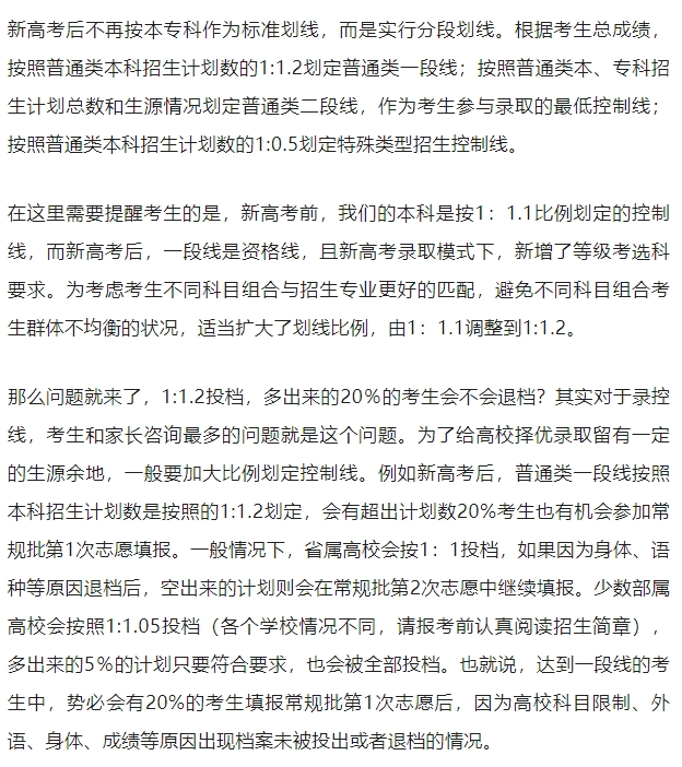 過(guò)去,我省藝術(shù)類會(huì)劃定本科文化控制線、專科文化控制線。新高考后,藝術(shù)類劃線是以普通類一段線為依據(jù),分美術(shù)、音樂(lè)等按照規(guī)定比例確定。