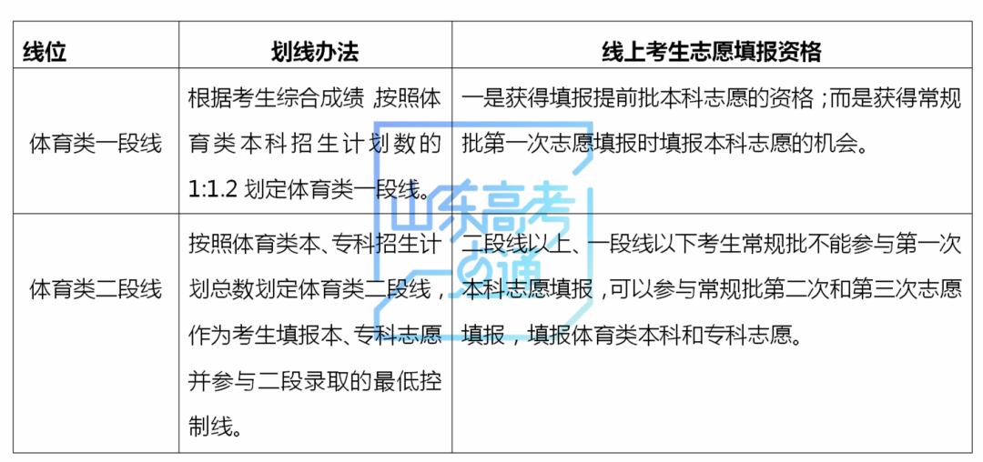 在專業(yè)成績(jī)合格生源范圍內(nèi)計(jì)算綜合分?jǐn)?shù),按綜合分?jǐn)?shù)劃定體育類一段線、二段線,按照體育類本科招生計(jì)劃數(shù)的1:1.2劃定體育類一段線,按照體育類本、專科招生計(jì)劃總數(shù)和生源情況劃定體育類二段線,作為考生參與錄取的最低控制線。