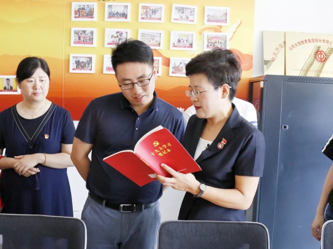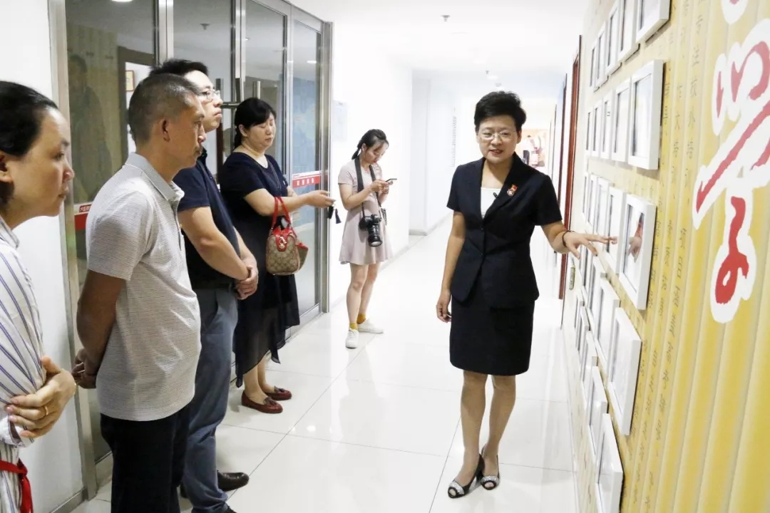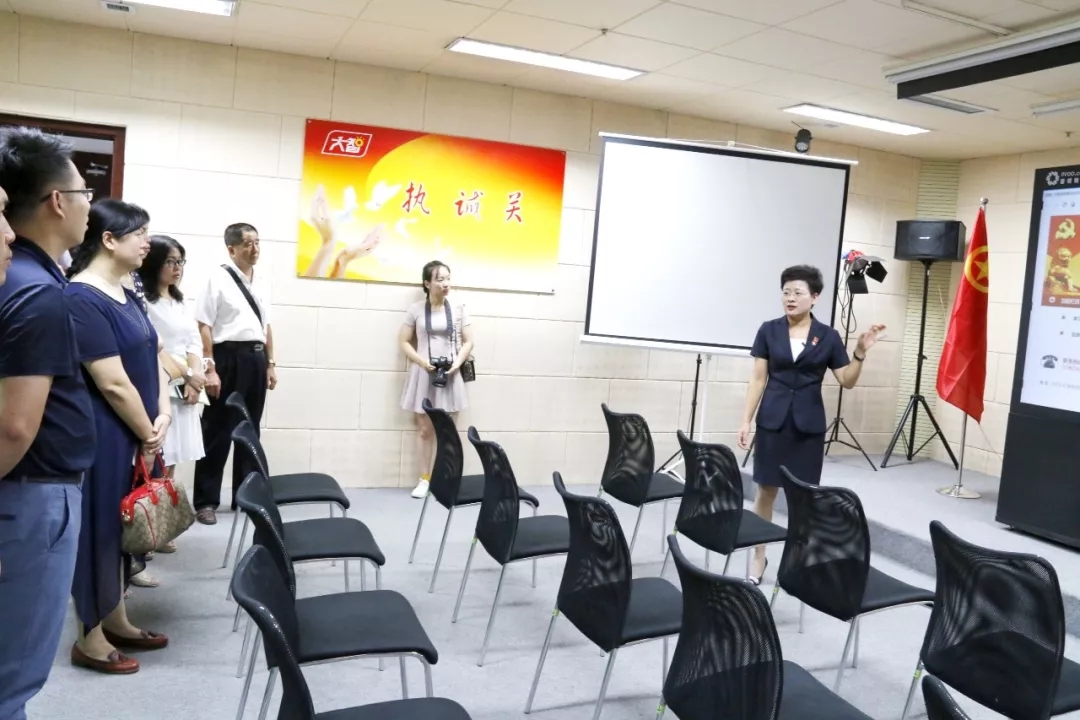 領導們參觀了大智控股集團總部。王現(xiàn)芹帶領大家參觀黨建長廊,詳細講解了大智黨建工作。