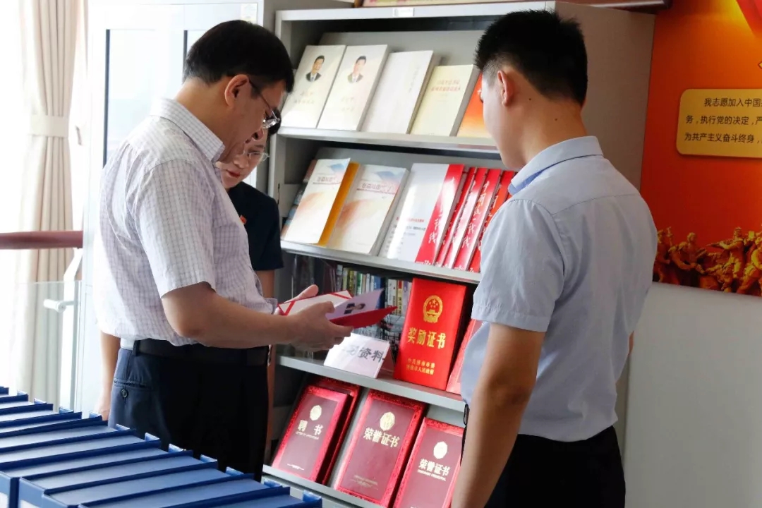 紀(jì)亮和王輝勇在王現(xiàn)芹帶領(lǐng)下參觀大智控股集團(tuán)總部。