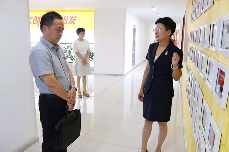 考察中,王現(xiàn)芹帶領(lǐng)大家參觀了大智控股集團黨建陣地,詳細(xì)介紹了大智“智惠黨建一三九”工作模式、所開展的黨建系列活動和黨建引領(lǐng)下的群團工作。