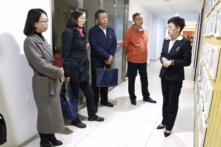 王現(xiàn)芹首先向大家介紹了大智黨委組織架構(gòu)。隨后,帶領(lǐng)大家參觀了大智控股集團黨建長廊,重點了解了大智“智惠黨建一三九”工作模式以及黨建引領(lǐng)下的大智 “一帶一促”群團建設理念和“智惠+”群團建設模式。
