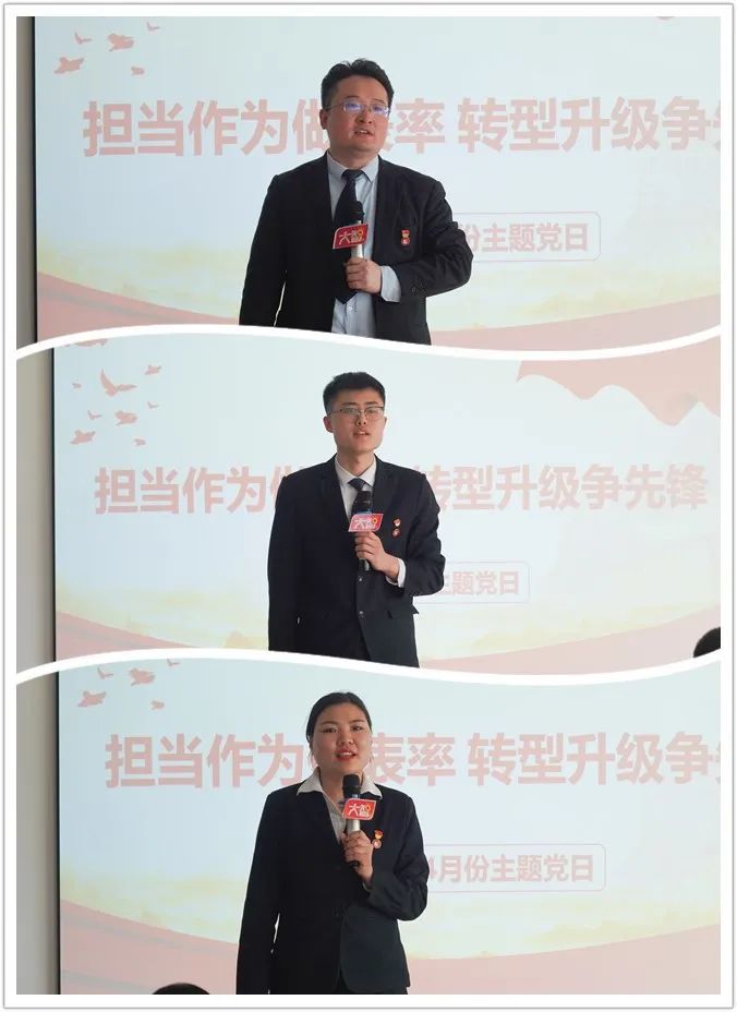 隨后,黨員代表進(jìn)行分享,他們表示,將珍惜平臺(tái),充分發(fā)揮黨員的先鋒模范帶頭作用,不斷提高自我修養(yǎng),發(fā)揮自身價(jià)值,為轉(zhuǎn)型升級(jí)貢獻(xiàn)力量。