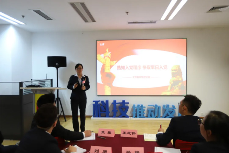 集團(tuán)黨委委員、紀(jì)委書記王艷艷帶來“熟知入黨程序,爭取早日入黨”主題培訓(xùn),詳細(xì)講解了入黨的程序、條件。