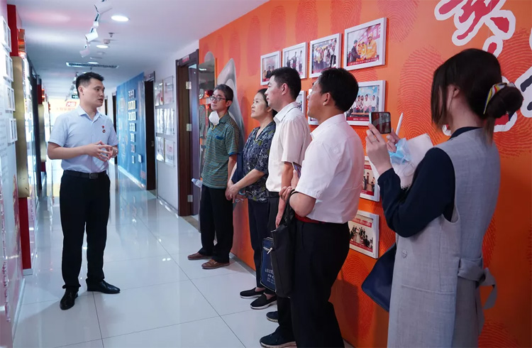 大智控股集團(tuán)黨委委員常廣成帶領(lǐng)大家參觀了大智黨群陣地,詳細(xì)介紹了大智“智惠黨建一三九”工作模式以及黨建引領(lǐng)下的大智 “一帶一促”群團(tuán)建設(shè)理念和“智惠+”群團(tuán)建設(shè)模式。