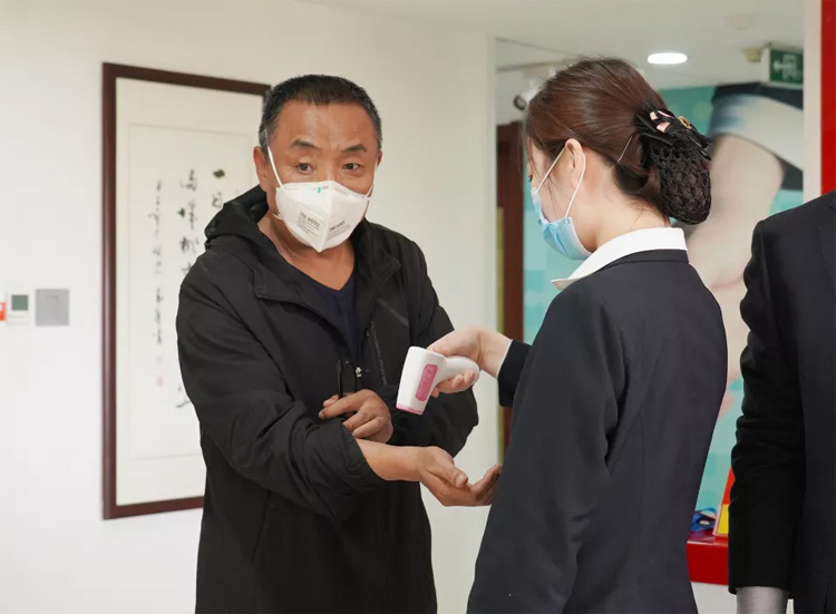 進(jìn)入辦公場所統(tǒng)一測體溫、登記