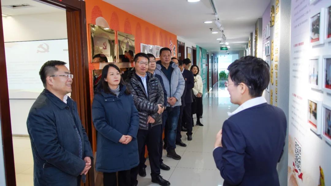 王現(xiàn)芹帶領(lǐng)大家參觀了黨建長廊,詳細介紹了大智組織架構(gòu)、企業(yè)文化等相關(guān)情況,以及“智惠黨建一三九”黨建工作模式,黨建引領(lǐng)下的“一帶一促”群團建設(shè)理念和“智惠+”群團建設(shè)模式。大家對大智的黨建工作給予了高度評價。