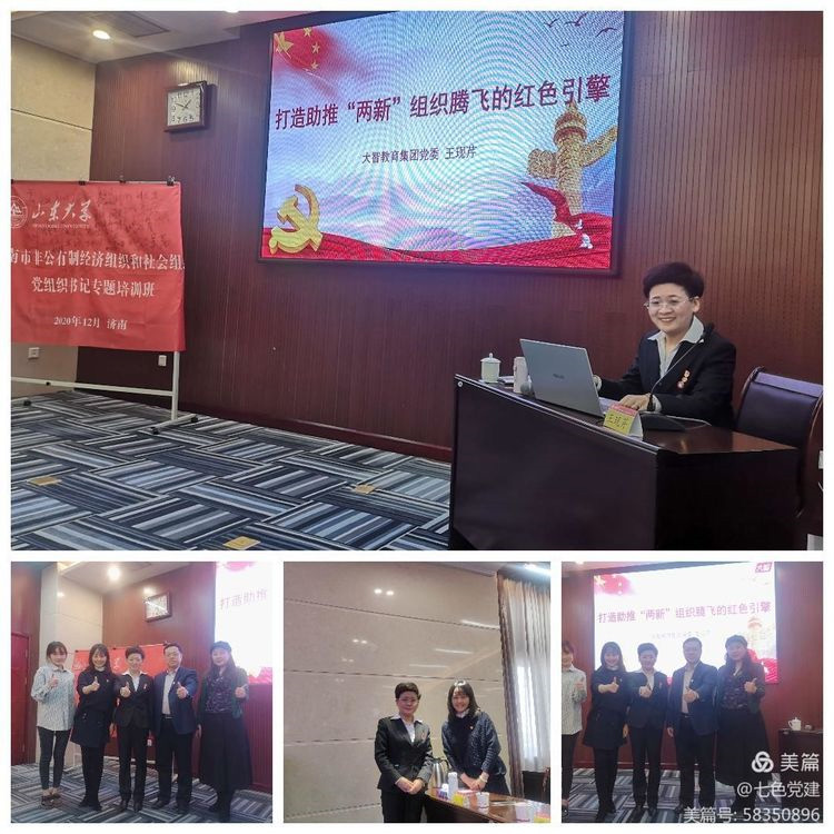 2020年12月21日至25日,濟(jì)南市非公有制經(jīng)濟(jì)和社會(huì)組織黨組織書(shū)記專(zhuān)題培訓(xùn)班在山東大學(xué)萊蕪培訓(xùn)基地順利舉行。大智控股集團(tuán)黨委書(shū)記王現(xiàn)芹受...
