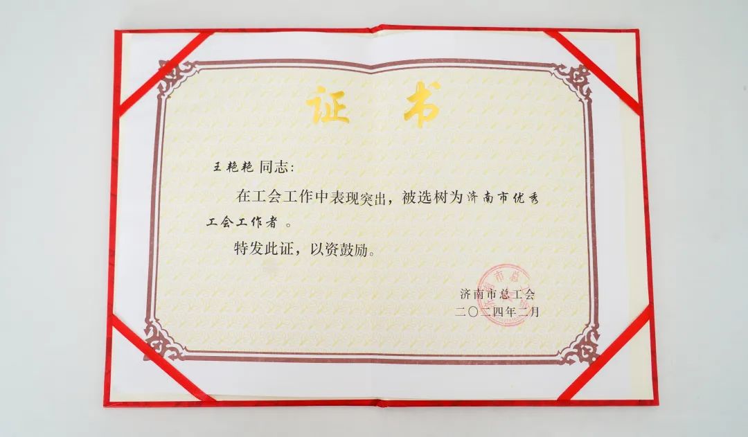 為激勵(lì)先進(jìn),樹(shù)立榜樣,發(fā)揮典型示范作用,近日,濟(jì)南市總工會(huì)開(kāi)展?jié)鲜袃?yōu)秀工會(huì)工作者選樹(shù)活動(dòng)。大智控股集團(tuán)工會(huì)主席王艷艷被樹(shù)為濟(jì)南市優(yōu)秀工會(huì)工...
