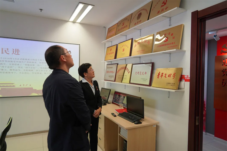在集團黨委書記王現(xiàn)芹的帶領(lǐng)下,紀(jì)宏偉一行首先參觀了大智黨建長廊、大智黨校。隨后聽取了王現(xiàn)芹就集團黨委統(tǒng)戰(zhàn)相關(guān)工作的匯報。